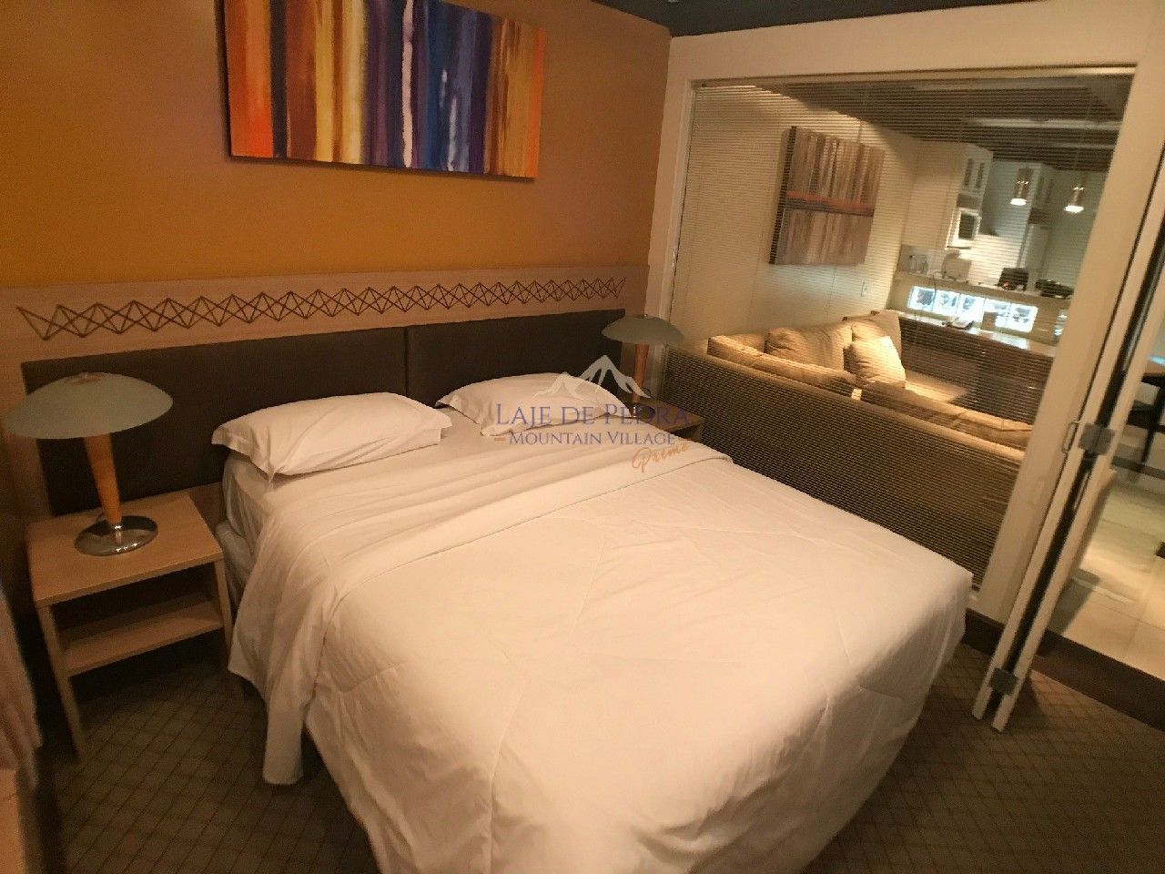 O Studio Premium Prime tem ar-condicionado (quente e frio), acesso às bicicletas, blackouts atualizados (melhor vedação da iluminação). Quarto com colchão Queen. Sala de estar com dois sofás-camas atualizados, Smart TV e lareira. Espaço gourmet equipado. Aproximadamente 50 m².